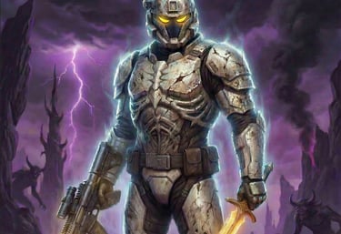 A shadowed remnant fighting for faith amid cosmic war.